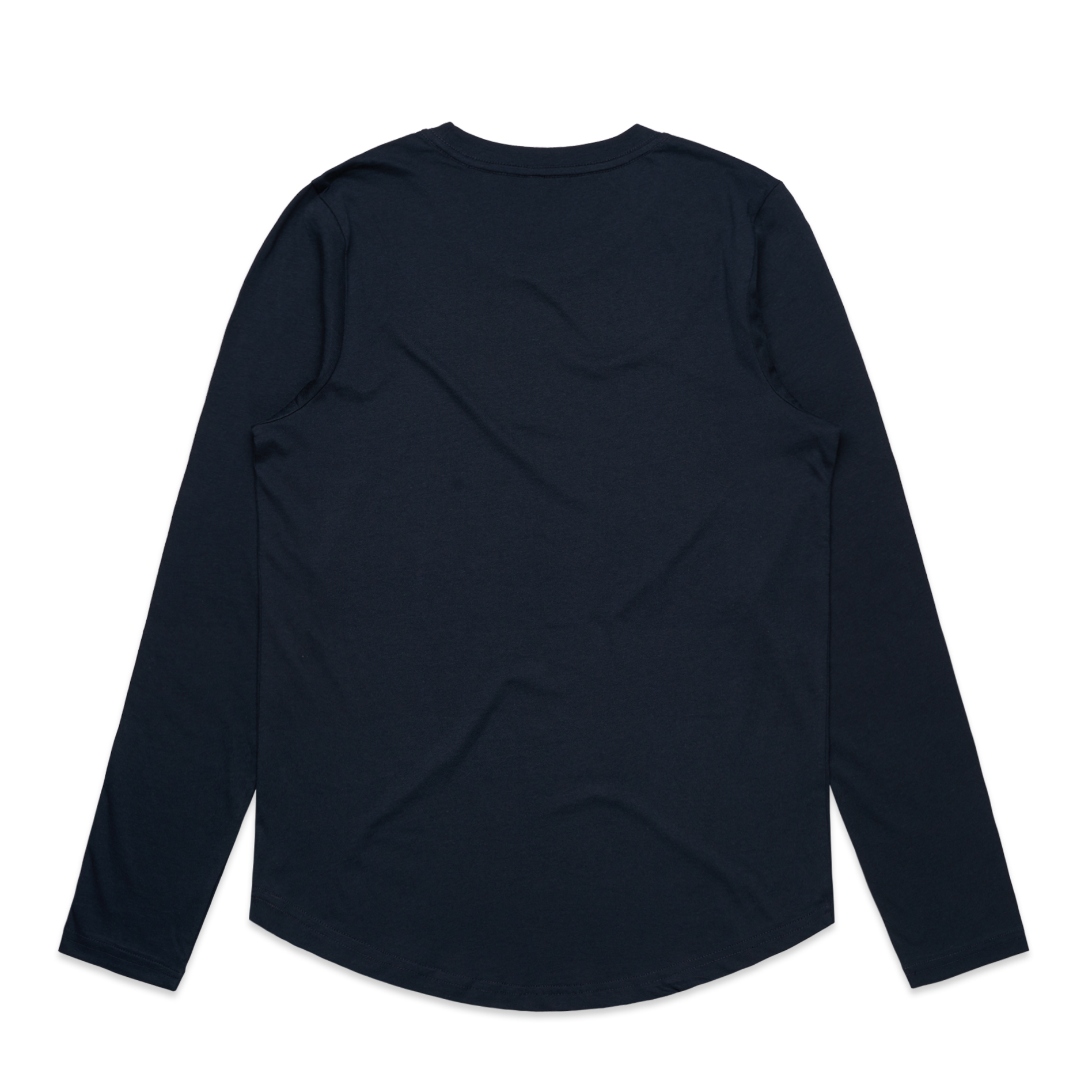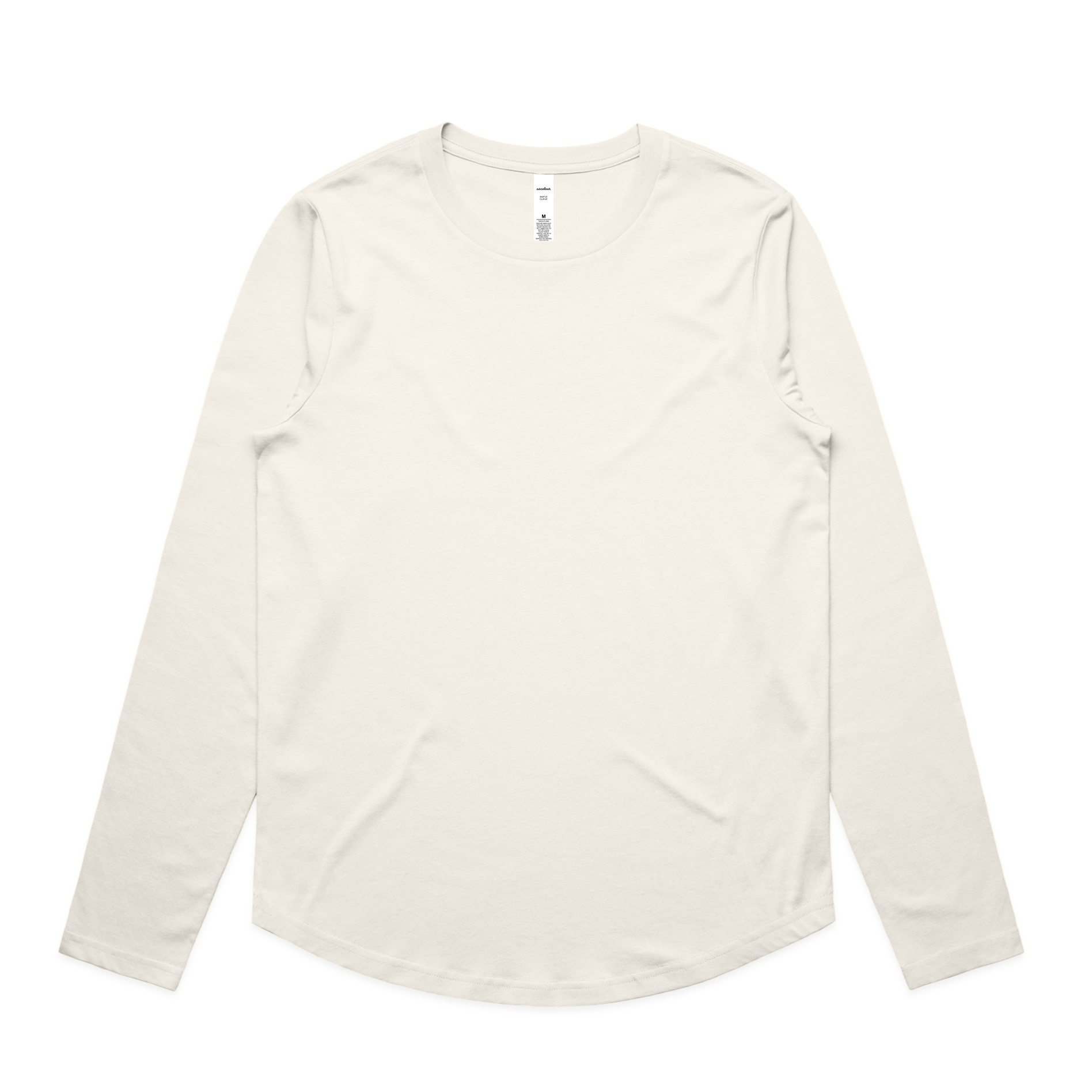 Scoop neck, curved hem, self-fabric binding on neck, side seamed, double needle hems, preshrunk to minimise shrinkage