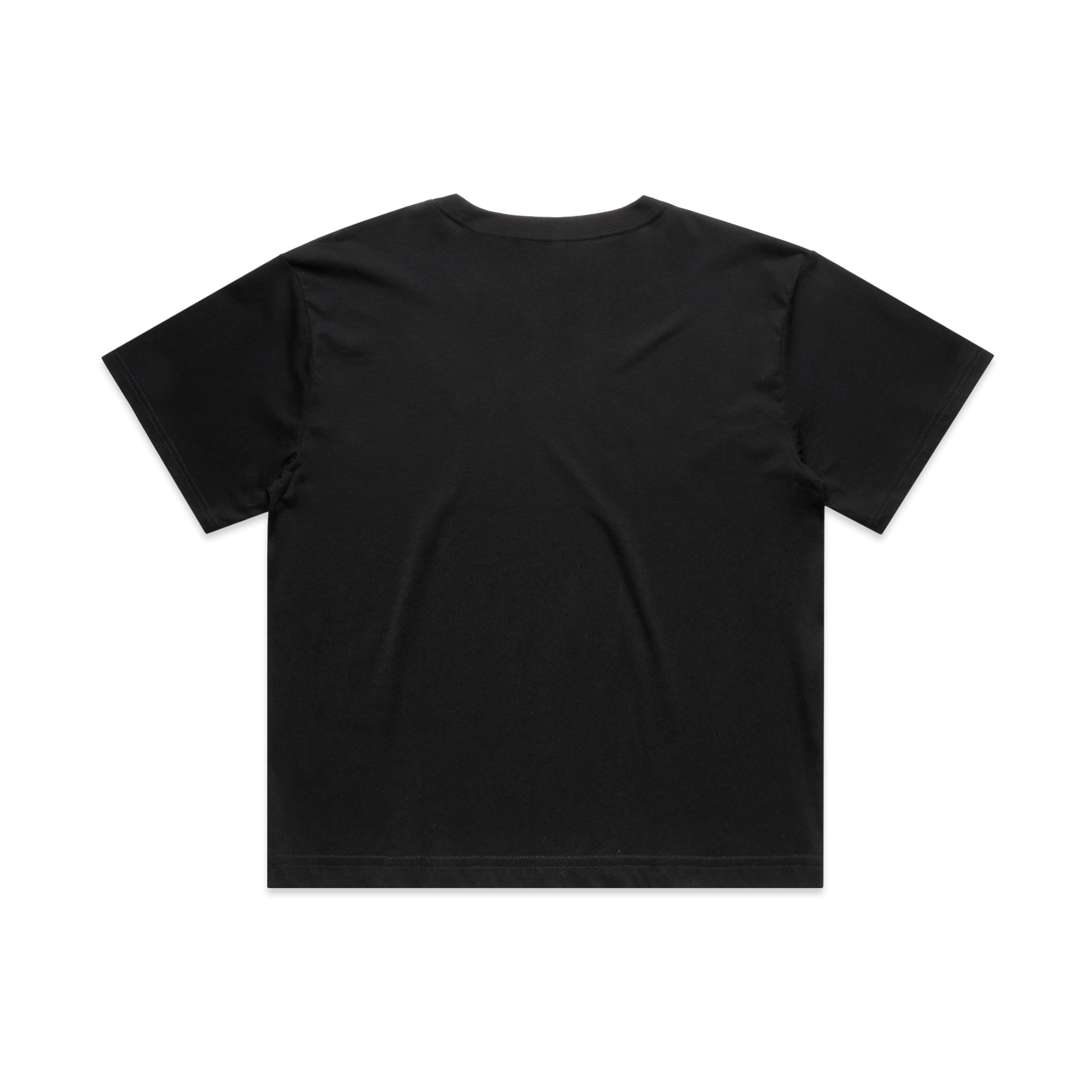 Wide neck ribbing with twin stitching, cropped full length, side seamed, shoulder to shoulder tape, double needle hems, garment dyed, preshrunk to minimise shrinkage