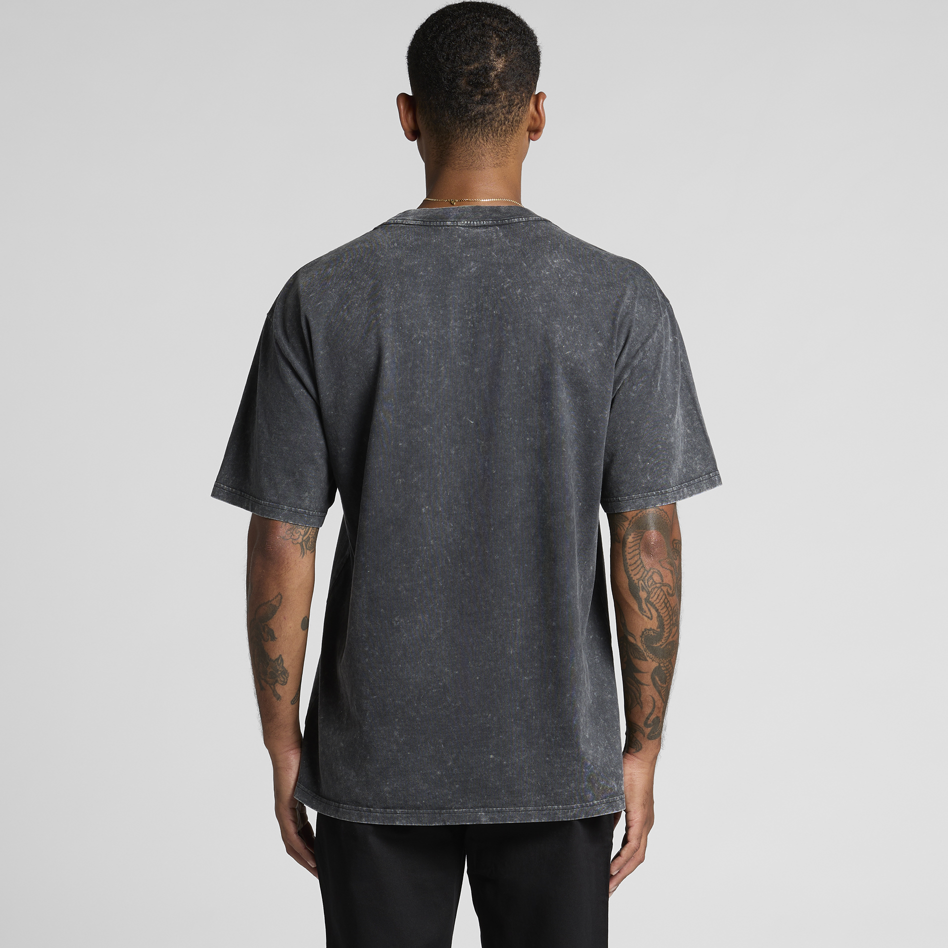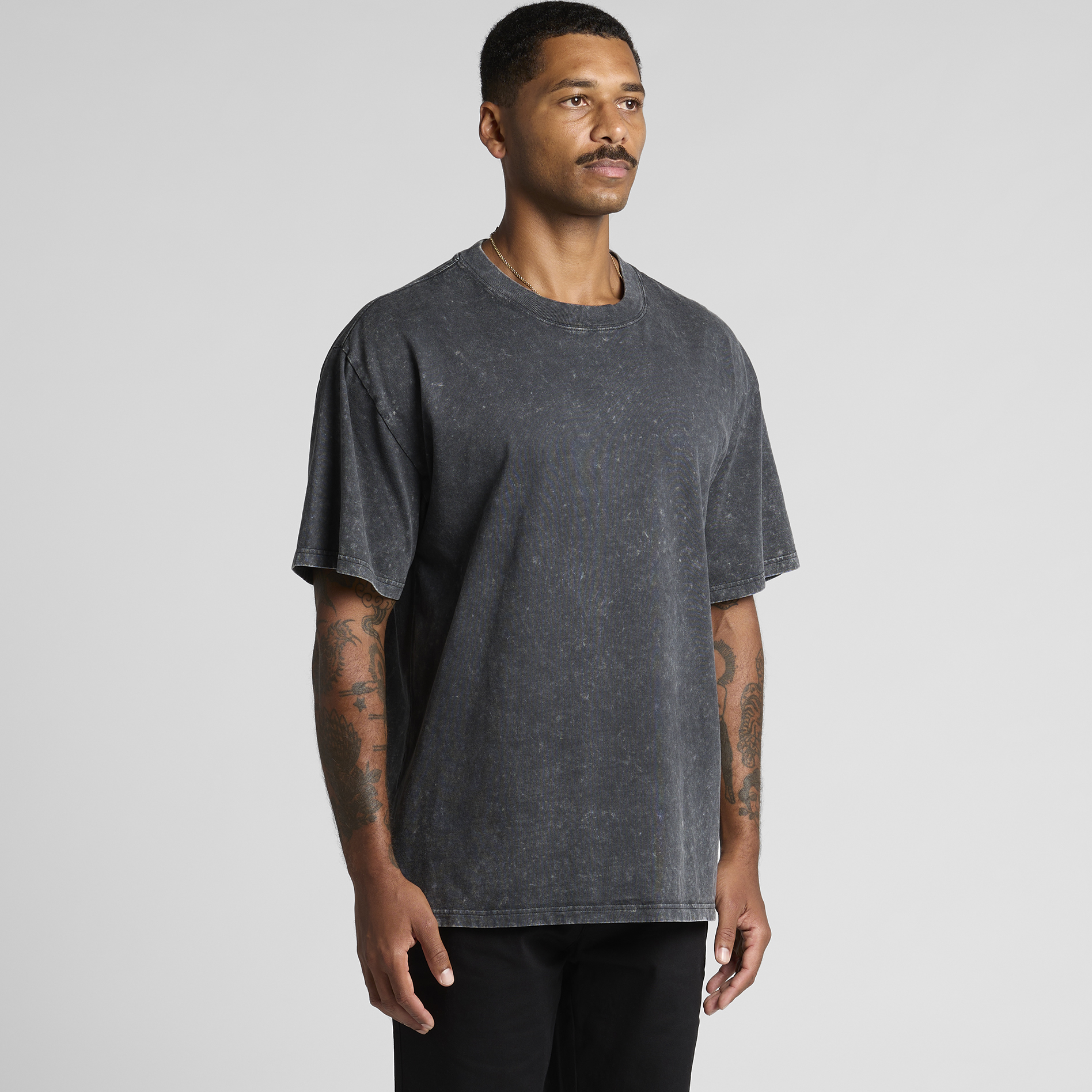 Wide neck ribbing with twin stitching, stone wash finish with a worn look, side seamed, shoulder to shoulder tape, double needle hems, acid wash look, preshrunk to minimise shrinkage